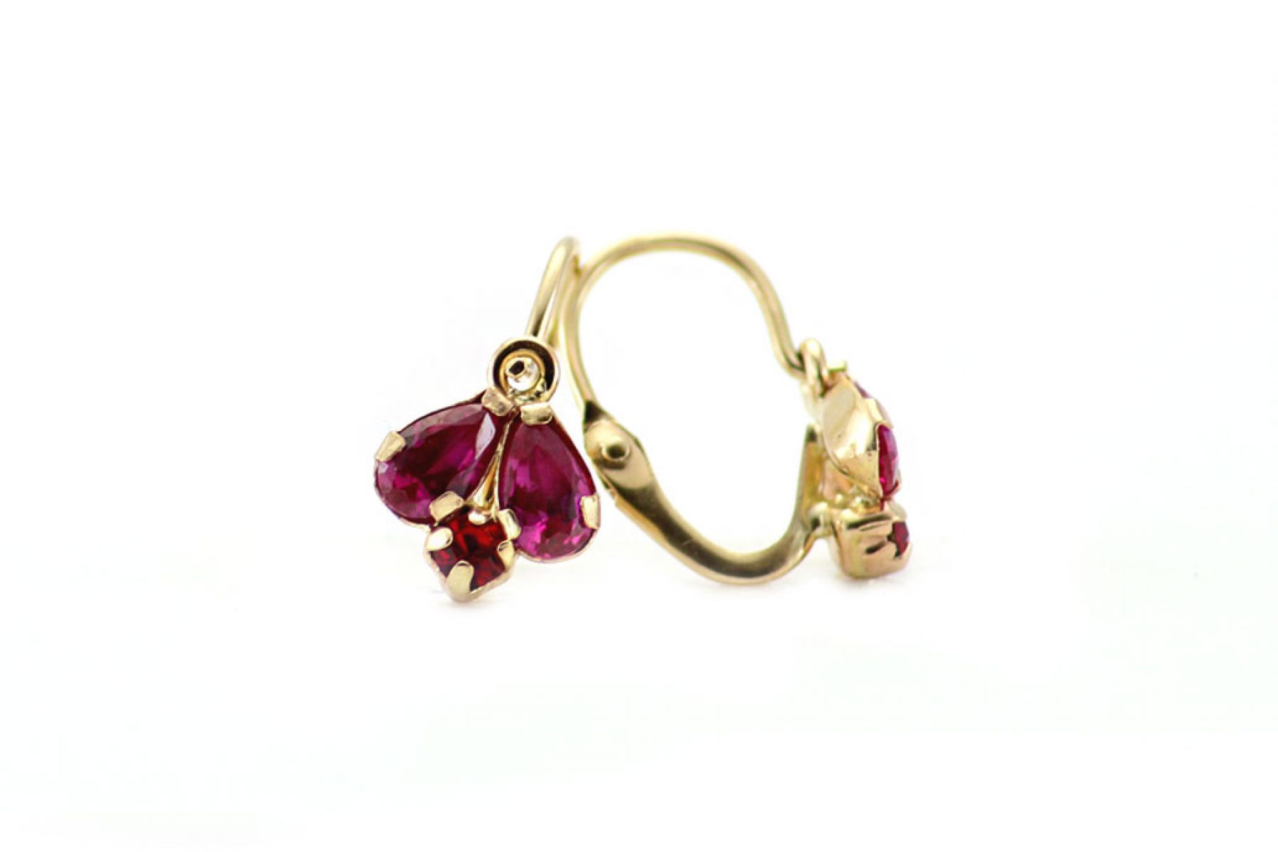 Arany baba és gyermek fülbevaló elölkapcsos méhecske pink-piros kővel