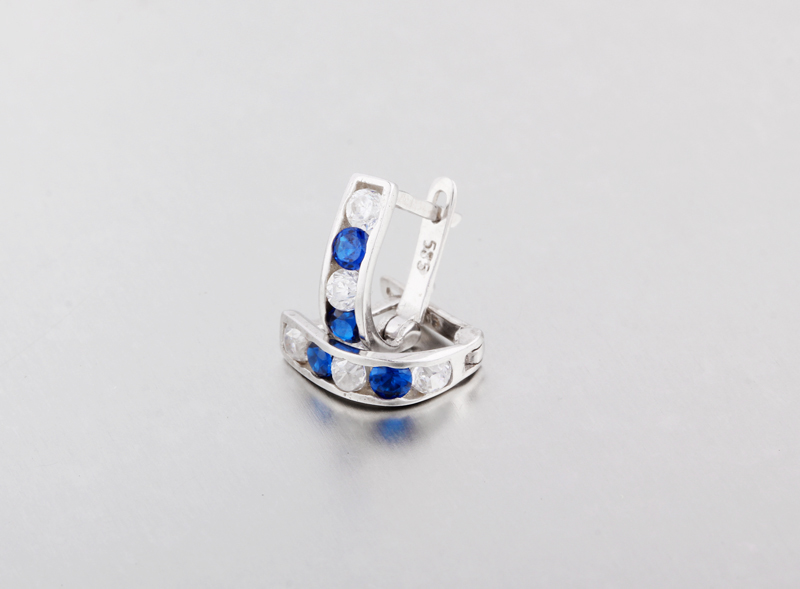 Arany gyerek fülbevaló kék-fehér kővel 9mm