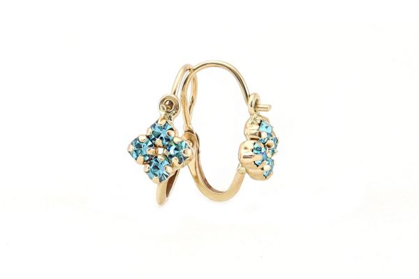 Arany gyermek fülbevaló elölkapcsos négy világoskék kővel