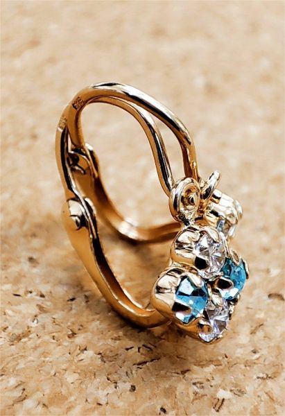 Arany gyermek fülbevaló elölkapcsos négyköves világoskék-fehér