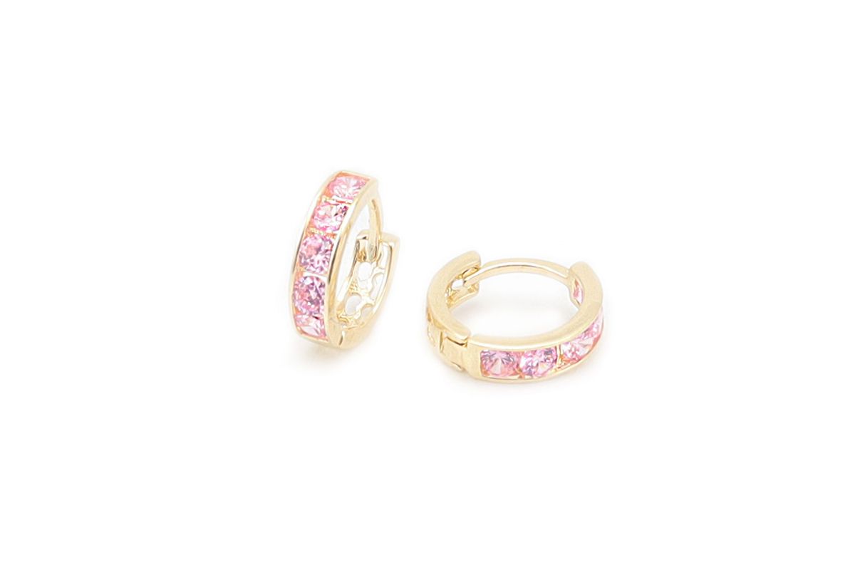 Rózsaszín köves karika arany baba fülbevaló 8mm 6köves
