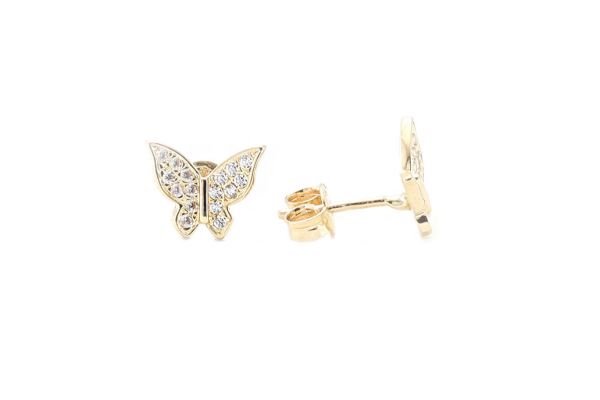Mit érdemes tudni a(z) Sárga arany fülbevaló stekkeres pillangó sok fehér kővel méretéről, anyagáról és jellemzőiről?
