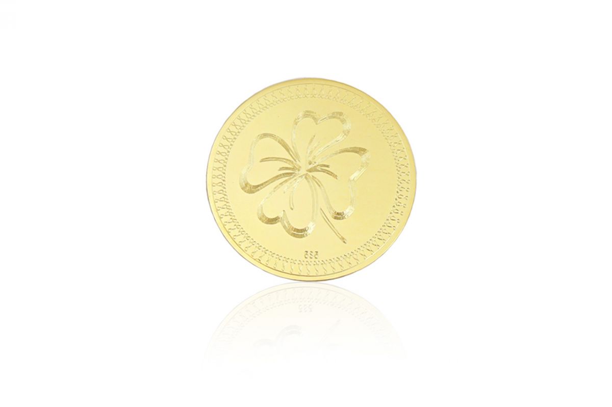 Elbűvölően bájos ez az ajándék pólyapénz emlékérem. Az érem 14 karátos aranyból készült, és egy szerencsehozó négylevelű lóhere díszíti. Ez az ajándék érme csodálatos meglepetés keresztelőre, várandósság alatt, vagy akár csak úgy, egy új kisbaba születésekor.