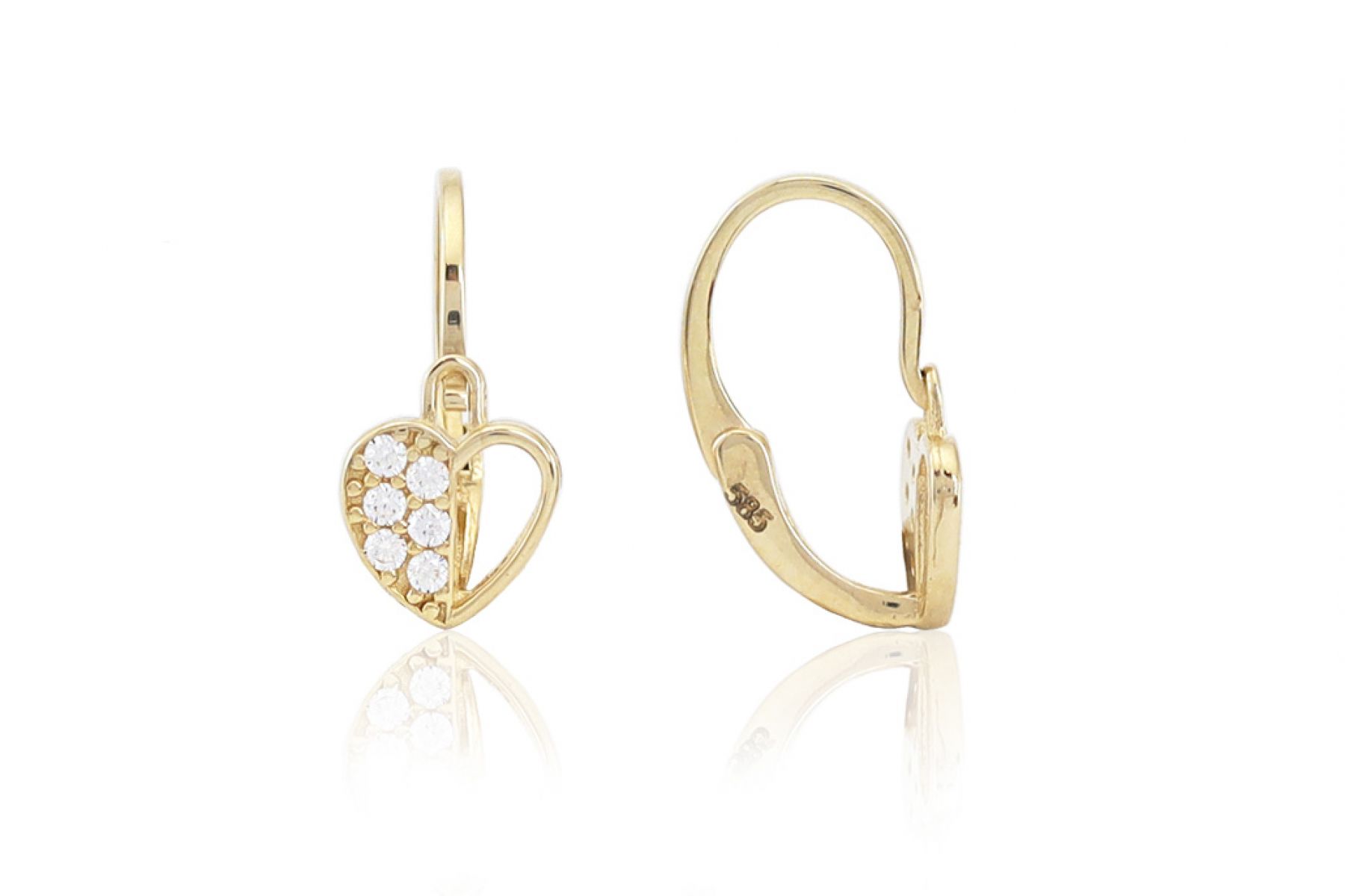 Arany baba és gyermek fülbevaló elölkapcsos félig áttört szív apró fehér kövekkel