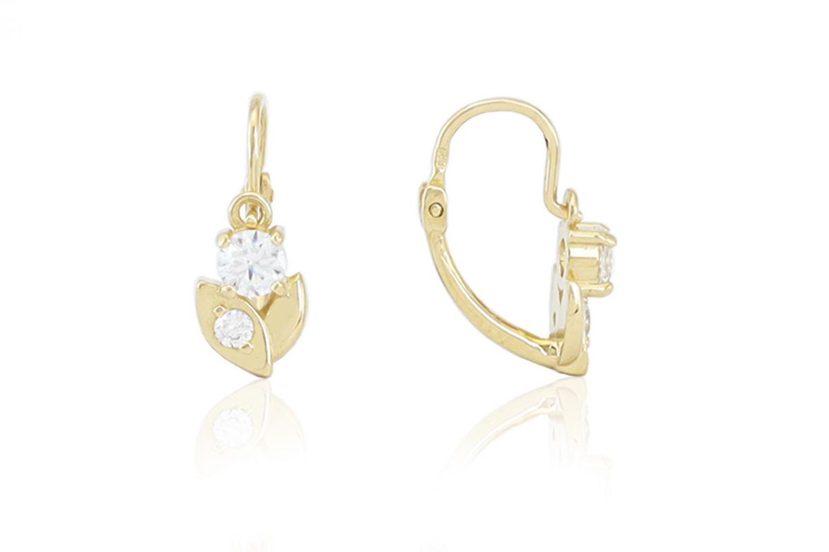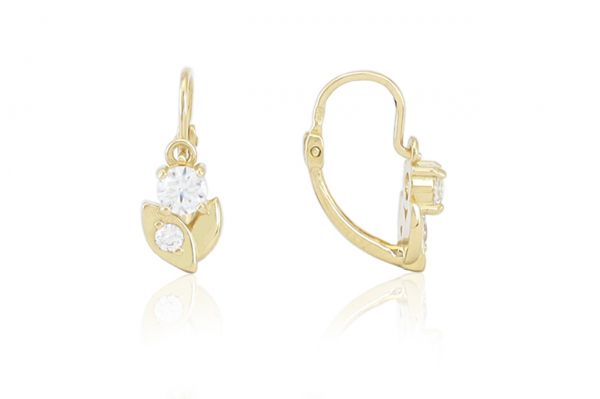 Amennyire aprócska, annyira szép és elegáns ez a szikrázó fehér cirkónia kövekkel díszített arany elölkapcsos virágos fülbevaló.