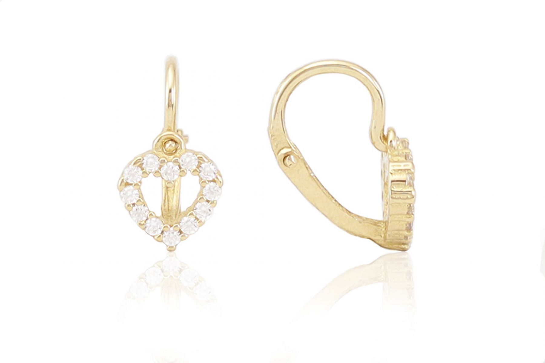 Amennyire aprócska, annyira szép és elegáns ez a szikrázó fehér cirkónia kővel díszített arany szívecske mintás fülbevaló.