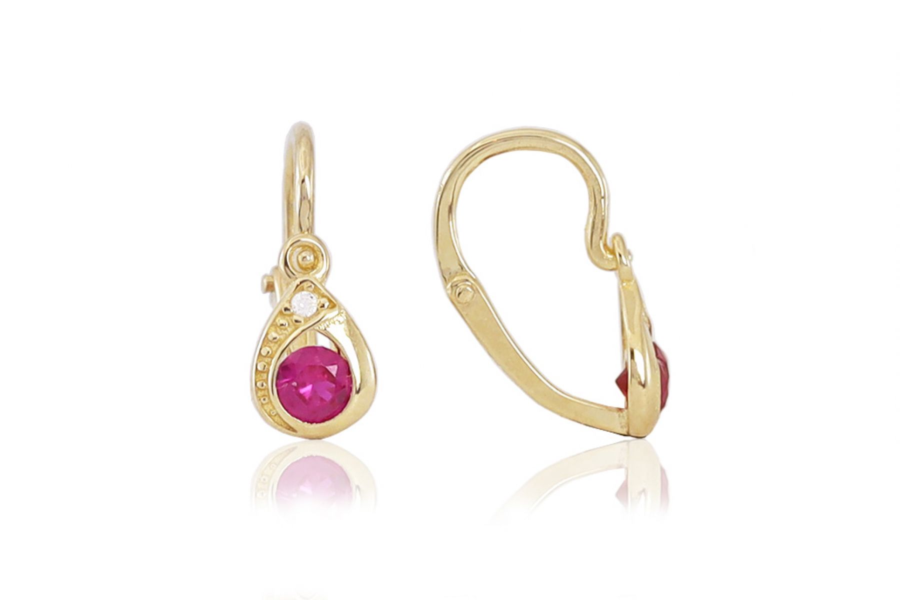 Arany baba fülbevaló elölkapcsos elegáns csepp pink és fehér kövekkel