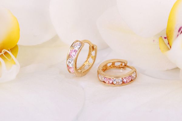 Arany baba fülbevaló rózsaszín fehér köves 6mm extra erős kapoccsal