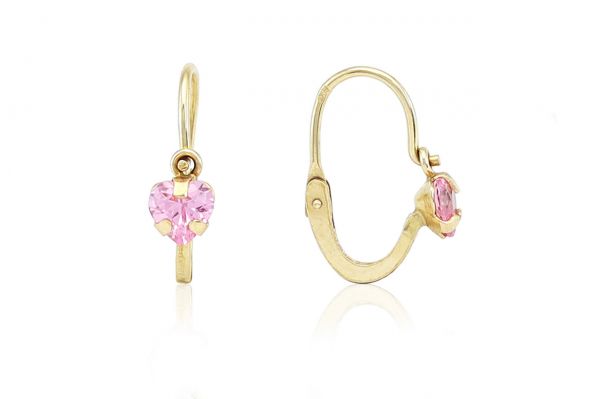 Arany gyermek fülbevaló elölkapcsos foglaltköves szívecske rózsaszín