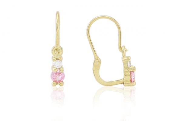 Arany gyermek fülbevaló elölkapcsos szoliter rózsaszín és fehér kővel