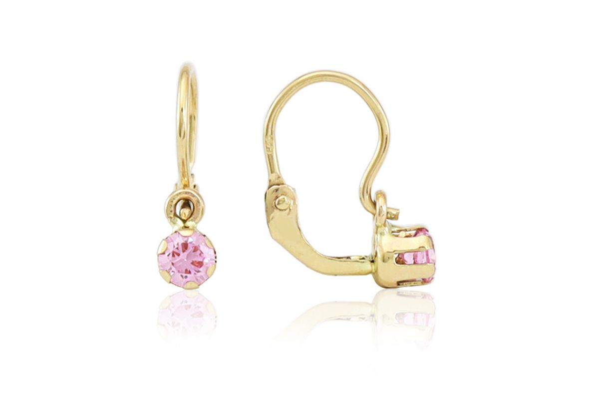 Arany gyermek fülbevaló elölkapcsos szoliter rózsaszín kővel