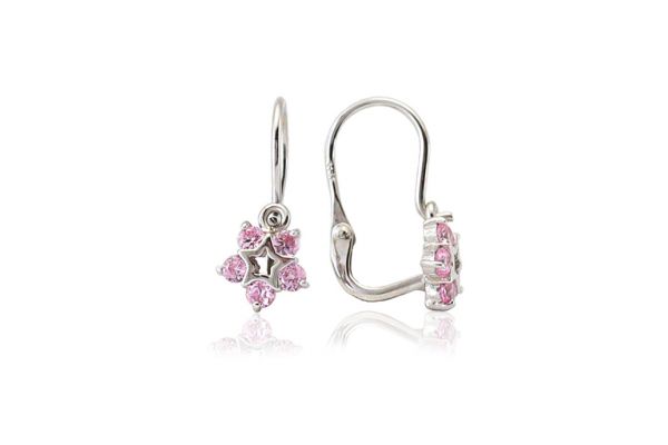 Amennyire aprócska, annyira szép és elegáns ez a szikrázó rózsaszín cirkónia kővel díszített fehér arany cisllagvirágos fülbevaló.
