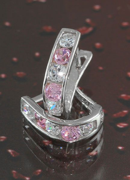 Fehérarany bébifülbevaló rózsaszín-fehér kővel 6mm d.r-a13.4.12f-r