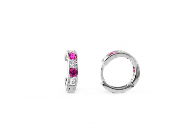 Magenta és fehér köves kör alakú fehérarany baba fülbevaló 8mm