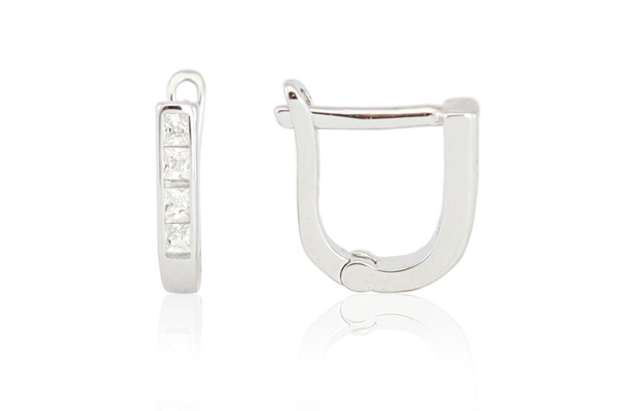 Ezüst baba és gyermek fülbevaló franciakapcsos szögletes fehér kövekkel