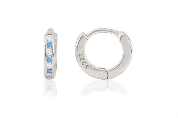 Világoskék és fehér köves baba ezüst fülbevaló bepattintós karika