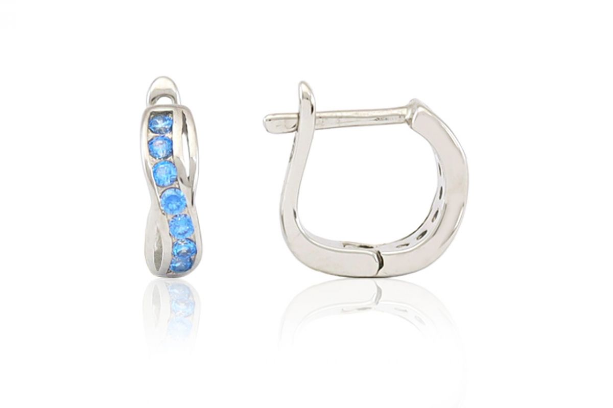 Ezüst baba fülbevaló franciakapcsos csavart világoskék kövekkel ródiumbevonatos