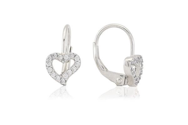 Egyik legszebb szívecskés, fehér köves ezüst baba fülbevalónk ez az apró cirkóniákkal díszített darab. Már a legapróbbak is biztonságosan hordhatják!