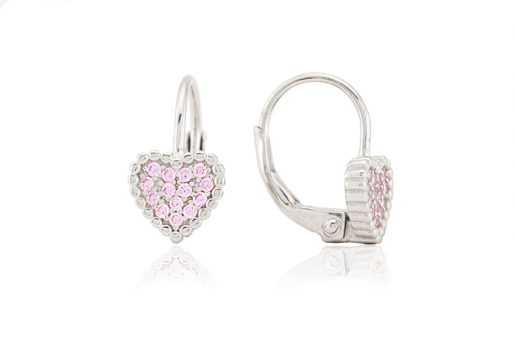 Egyik legszebb szívecskés, rózsaszín köves ezüst baba fülbevalónk ez az apró cirkóniákkal díszített darab. Már a legapróbbak is biztonságosan hordhatják!