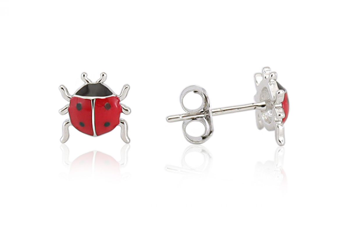 Ezüst fülbevaló bedugós festett katica ródiumbevonatos
