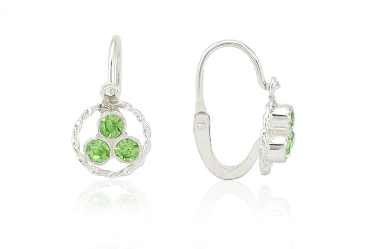Gyönyörűen szikráznak a rájuk eső fényben ezek a világoszöld cirkónia kövekkel díszített ezüst gyermek fülbevalók.